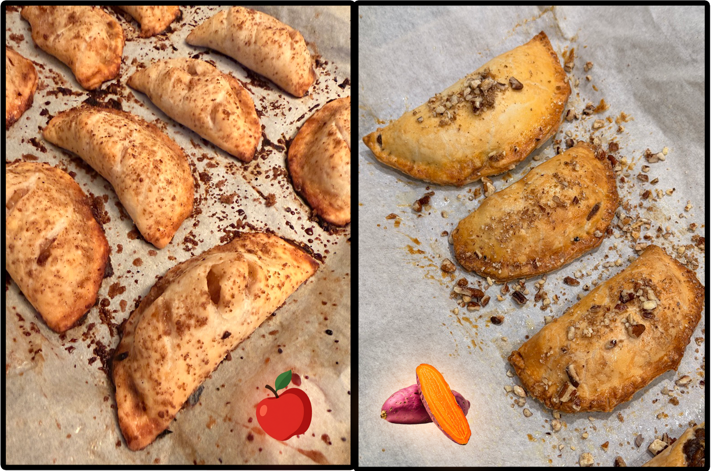 Sweet Potato Turnover: This warm pocket is like sweet candied yams nestled inside a buttery, flaky crust, topped with toasted pecans. Just let us know if you would like it without the nuts!