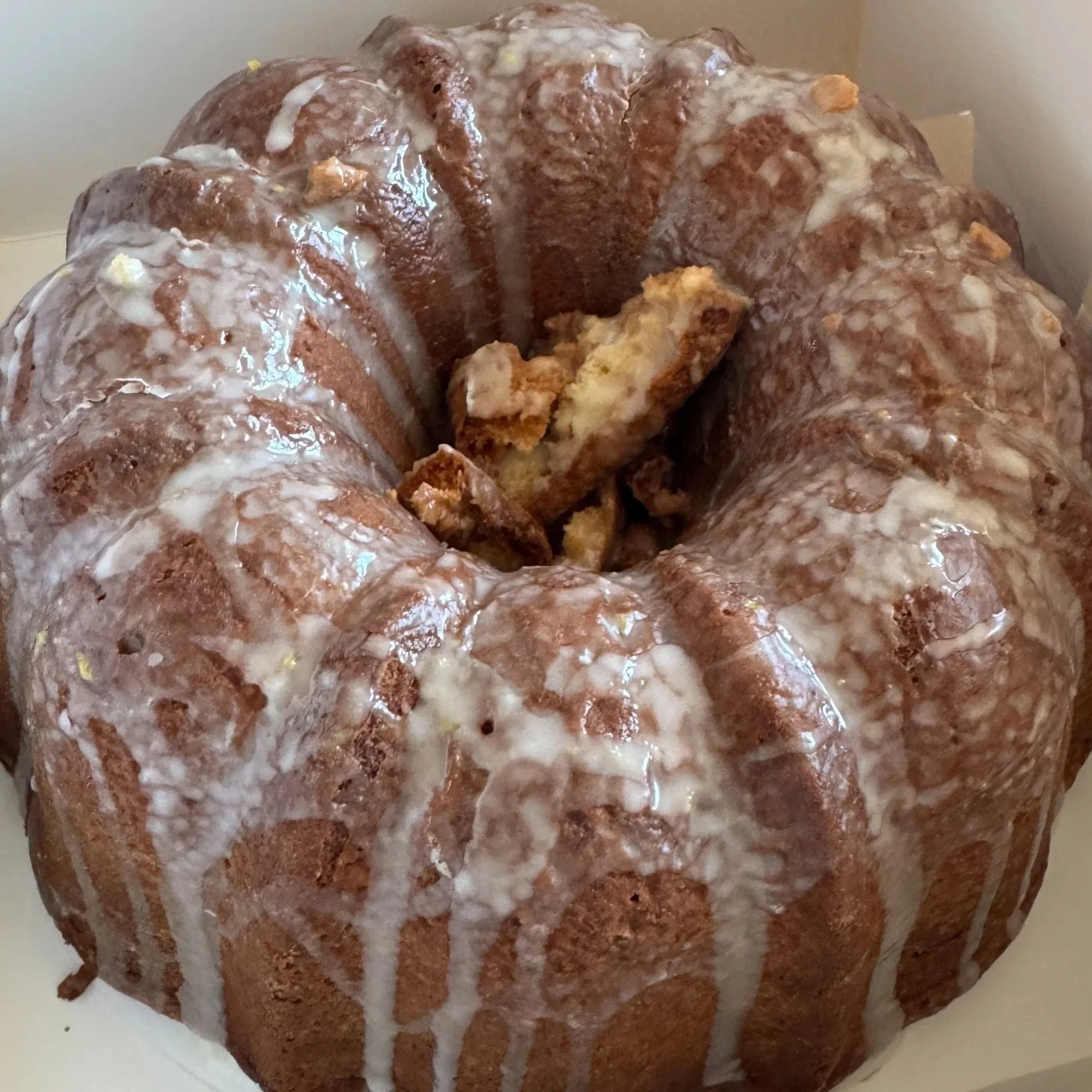 This traditional 7up cake has been requested and is now offered at Randy’s Kitchen! Same great flavor as our crunch cake just in its traditional bundt cake form. Made homemade fresh with its lemony glaze drizzled on top, you will wonder how you did with out this traditional lemony pound cake with every bite you take